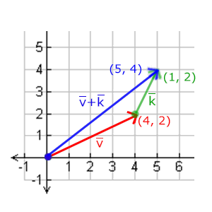 \bar{v} = \begin{pmatrix} \color{red}1 \\ \color{green}2 \\ \color{blue}3 \end{pmatrix}, \bar{k} = \begin{pmatrix} \color{red}4 \\ \color{green}5 \\ \color{blue}6 \end{pmatrix} \rightarrow \bar{v} + \bar{k} = \begin{pmatrix} \color{red}1 + \color{red}4 \\ \color{green}2 + \color{green}5 \\ \color{blue}3 + \color{blue}6 \end{pmatrix} = \begin{pmatrix} \color{red}5 \\ \color{green}7 \\ \color{blue}9 \end{pmatrix}