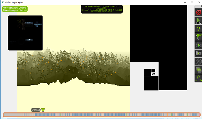 NVIDIA流行的[Nsight](https://developer.nvidia.com/nvidia-nsight-visual-studio-edition) GPU调试工具并不是一个独立程序,而是一个Visual Studio IDE或者Eclipse IDE的插件 (NVIDIA现在也提供[独立版本](https://developer.nvidia.com/nsight-graphics)了)。Nsight插件对图形开发者来说非常容易使用,因为它给出了GPU用量,逐帧GPU状态大量运行时的统计数据。