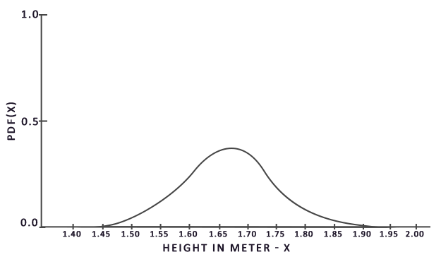 从该图中我们可以看出,如果我们对人口任意随机采样,那么挑选身高为 1.70 的人口样本的可能性更高,而样本身高为 1.50 的概率较低。