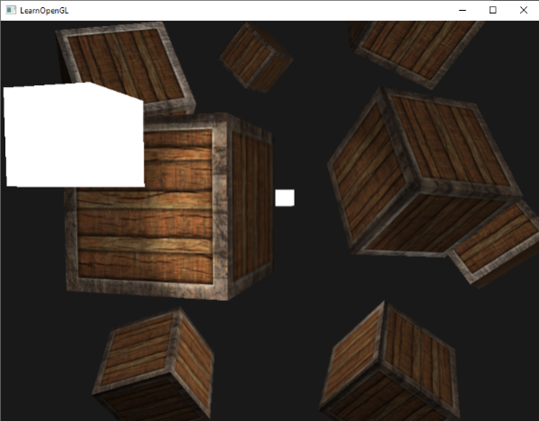 接下来我们从pointLights数组中索引对应的PointLight,将它的position值设置为刚刚定义的位置值数组中的其中一个。同时我们还要保证现在绘制的是四个灯立方体而不是仅仅一个。只要对每个灯物体创建一个不同的模型矩阵就可以了,和我们之前对箱子的处理类似。