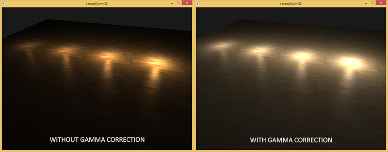 第二种方法需要更多的工作,但也让我们完全控制伽马操作。我们在每个相关的像素着色器运行结束时应用伽玛校正,因此最终的颜色在发送到显示器之前结束伽玛校正。